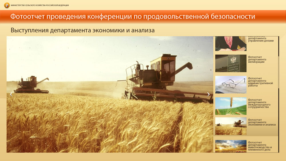 Интерактивный инфографический проект Министерства сельского хозяйства, состоящий из презентации и программы ситуационного центра для мониторинга и прогнозирования состояний.