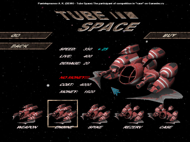 Проект для конкурса на gamedev.ru, написанный за 2 недели. За основу взята идея Qrace, дополнено возможностью модифицировать и улучшать свою гоночную ракету за счет выигрышей на пройденных трассах.